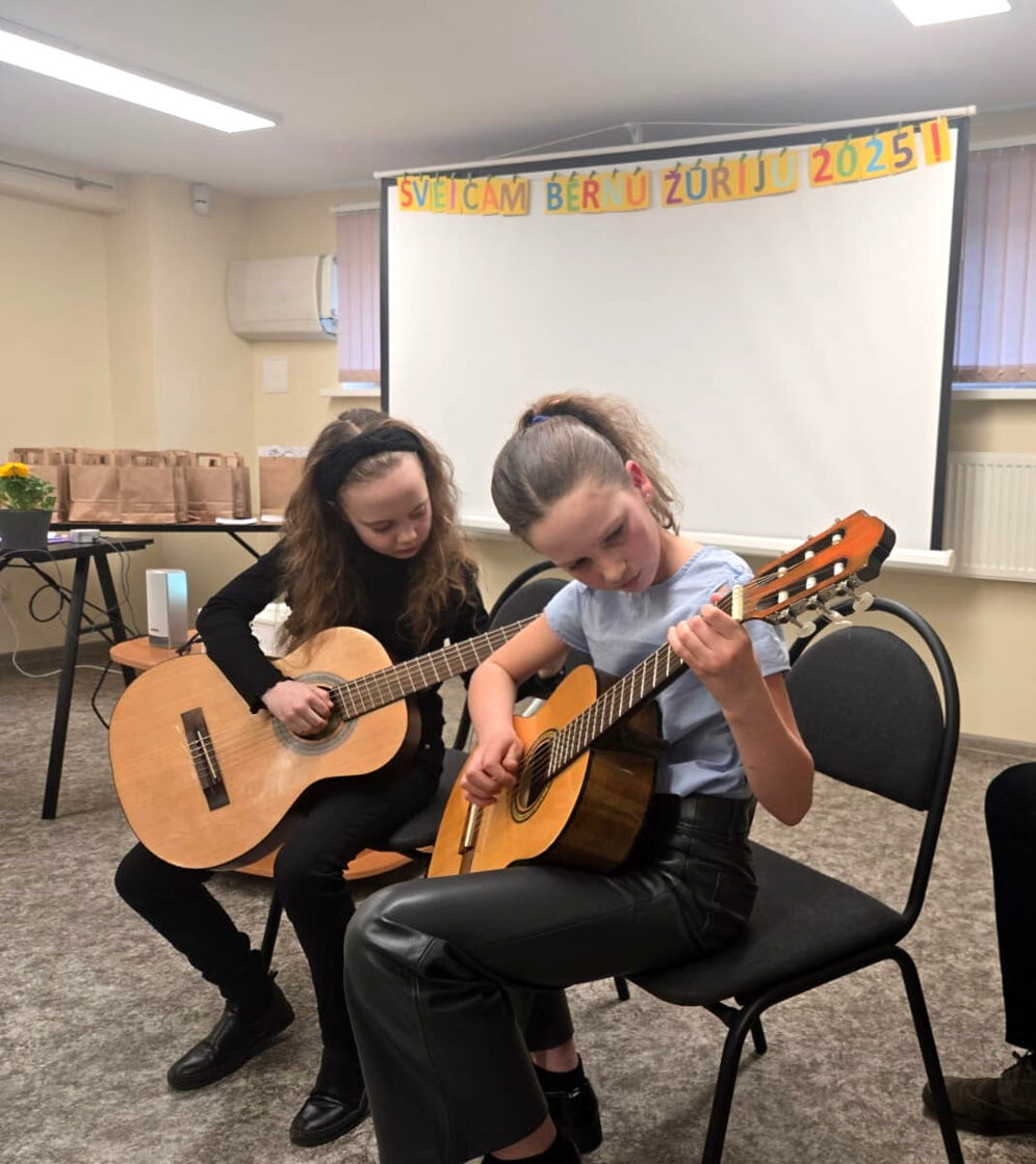 vijoles un ģitāres spēles audzēkņi, kuri ar priekšnesumiem priecēja “Bērnu, jauniešu un vecāku žūrijas 2025” ekspertus
