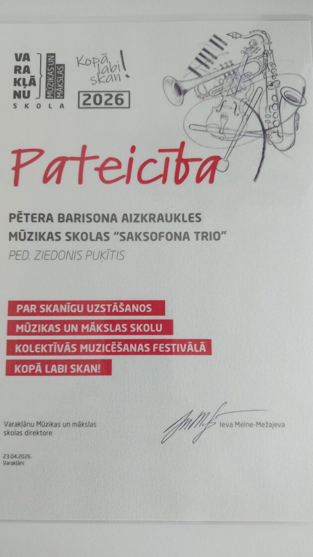 Konkurs mūzikas literatūra un solfedžo "Pēterim Barisonam 120" 04.04.2024.